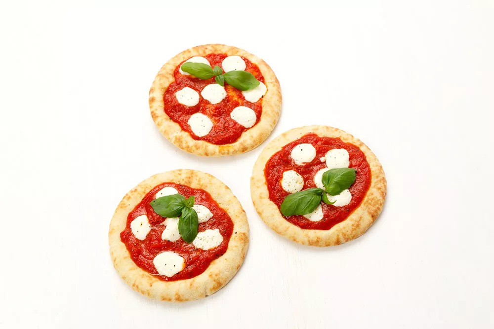 Instructions: Spread sauce on pitas. Add cheese and toppings. Bake at 375°F for 8 minutes.