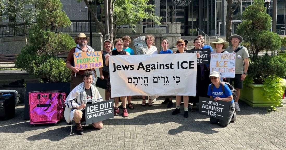 Hinenu Protests Against ICE By - - August 13, 2025 0 Share FacebookTwitterPinterestWhatsAppLinkedinReddItEmailTumblrMixPrint Members of Hinenu and 13 other local Jewish communities gathered outside the George Fallon building where immigrants and refugees are being held by ICE in protest of the Trump administration’s policies. Photo by Hinenu