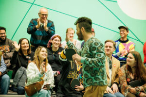 While ping-pong may not necessarily conjure up the same level of pomp and circumstance as football or basketball, the team at the museum was committed to creating a unique environment for the opening event. It was held on March 29 and featured Davis playing in a marquee matchup against Isaac Simon, who is the internship programs manager at the Museum of Jewish Heritage and had a role in “Marty Supreme.”