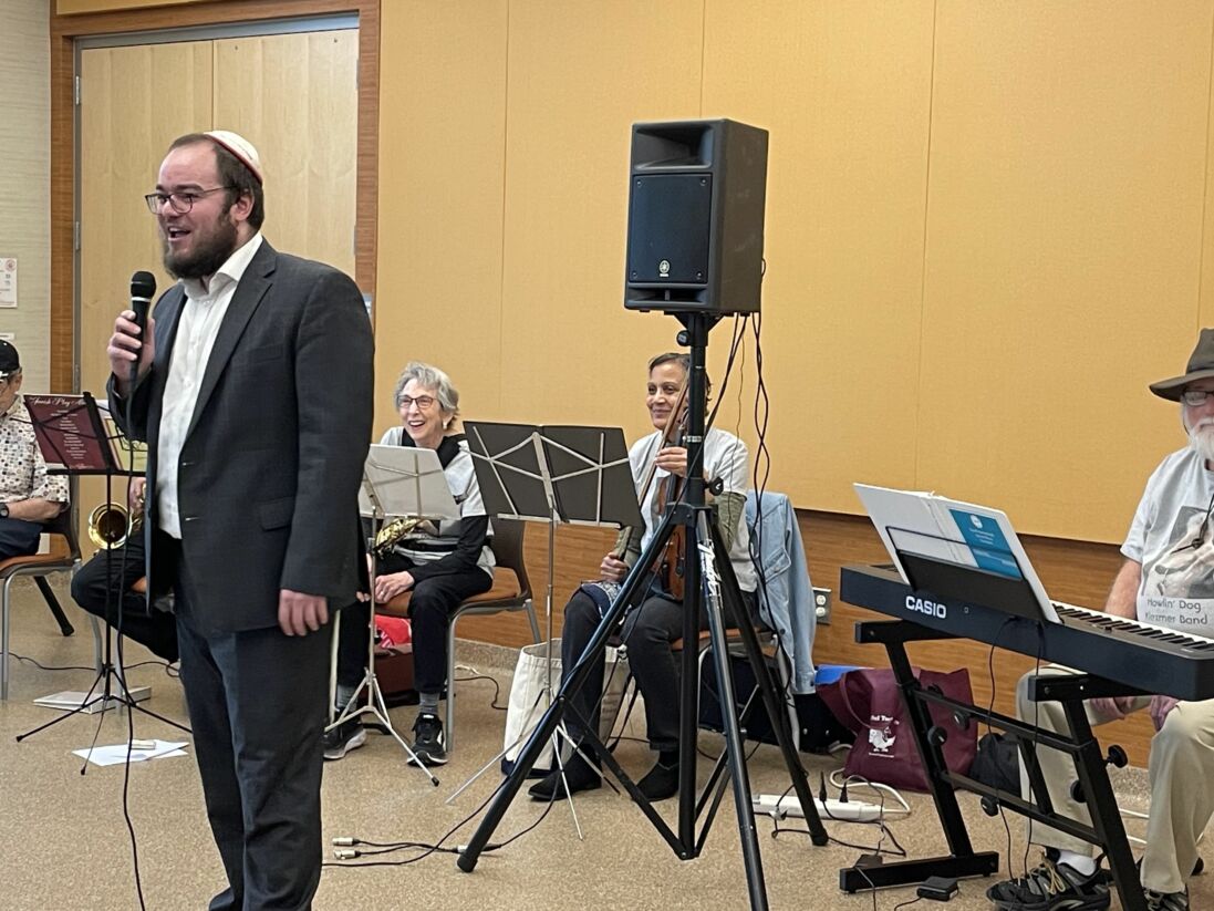 Baron is a member of the Howling Dog Klezmer Band, an informal music group of community members who meet regularly to practice Jewish music. He’s one of the singers, and also sang at the model seder.