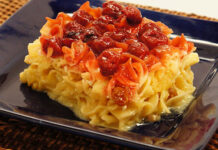 The recipe is versatile because the compote is pareve. It’s also simple to prepare — you just combine the ingredients in a pot and let them simmer for about a half-hour. It tastes like something you spent hours on, but without the fussiness of preparing a fruit coulis.