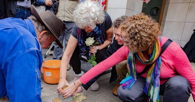 Artist Demnig, who engraves the plaques, completed the installation of the Stolpersteine with several blows of a rubber mallet on the stones. “It was apparently a real honor for him to be there,” added Pazornick.